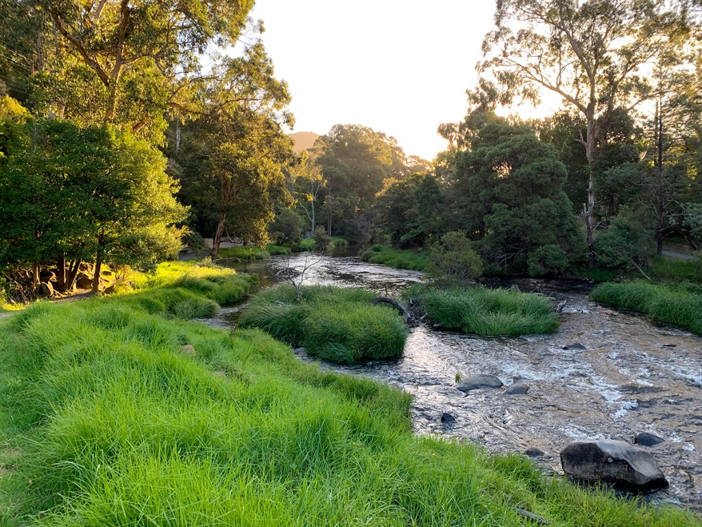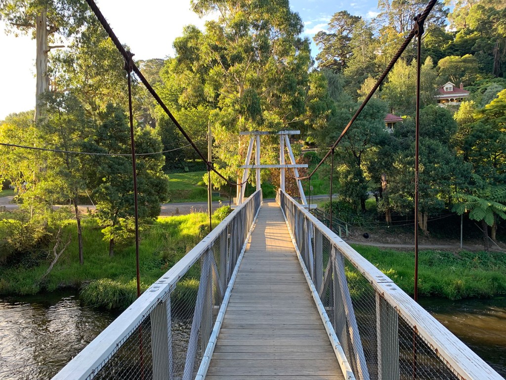 Warburton is nestled in a valley between forested mountains, and its most attractive feature is the picturesque walk along the Yarra River, dotted with bridges. I couldn’t resist taking a stroll after dinner on Friday night, with the river bathed in beautiful golden light:
