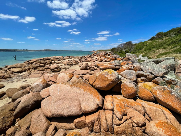 The next day was the sort of confusing Melbourne day when you don’t know whether to put on a parka or a T-shirt, however I was happy to have clear skies and bright sun for the second day in a row. The Cape Woolamai Circuit turned out to be a 2.5 hour trail which alternated between walking on the beach and on a path along the coast, and perfect for people who aren’t too fond of going uphill. I was completely unprepared though for just how beautiful it was, with wildflowers, beaches and rock formations along the way.