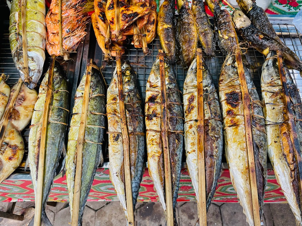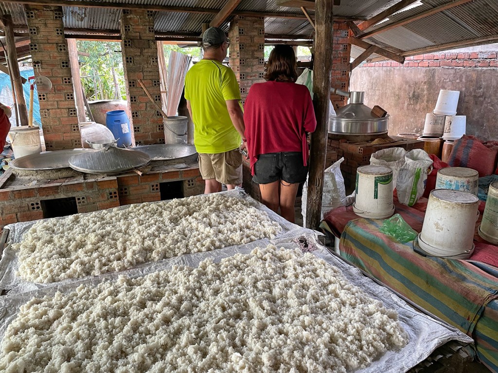 Even so, the day in the countryside was amazing. We visited small cottage industries producing rice wine, rice paper, banana snacks and delicacies, which we of course sampled (though I passed on the snake-flavoured rice wine). My favourite was a popular snack of rice baked inside a bamboo stick. Later in the tour we did another day trip around the lush and green countryside of Kampot, a city in southern Cambodia, which took in the pepper plantation and local seafood market, and finished at the beach.