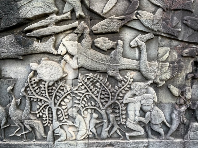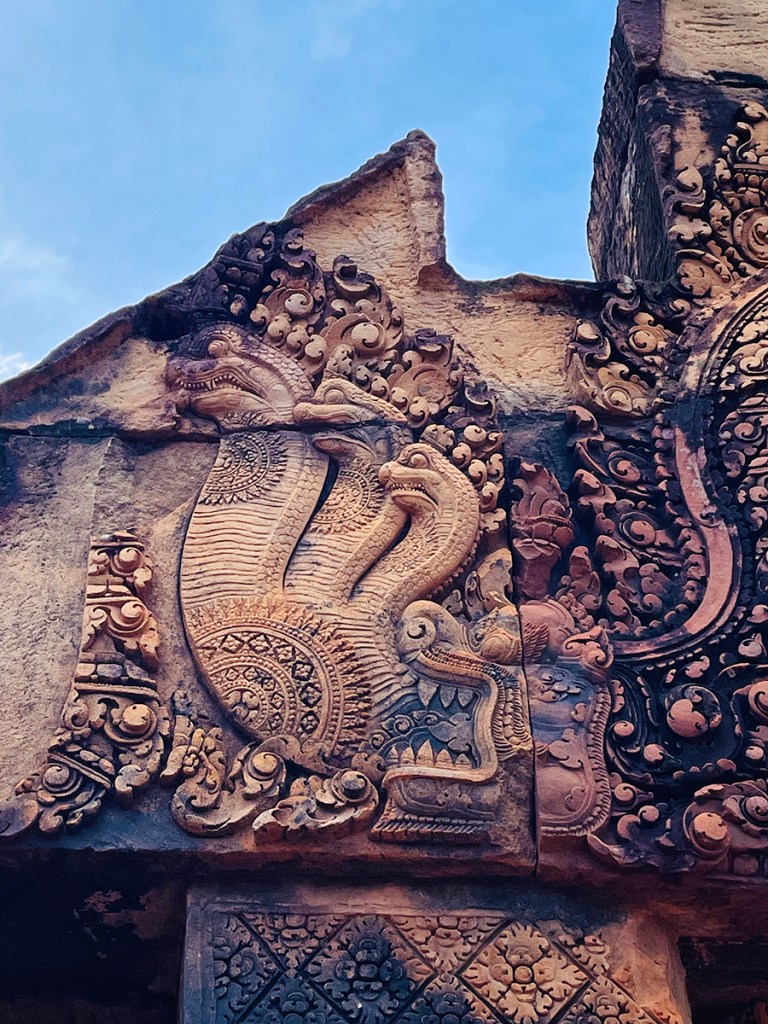 We spent the rest of the morning and most of the previous day exploring the Angkor Archaeological Park and its most famous sites: the trees of Ta Prohm Temple (made famous by Angelina Jolie’s Tomb Raider); the elaborate and pretty Banteay Srei a.k.a. the Lady Temple; the labyrinthine Bayon Temple and the impressive bridge to Angkor Thom decorated with statues of demons and gods. In a way, we were lucky to travel to Cambodia at a time when tourism is still in the post-pandemic recovery mode, with lesser crowds at the popular spots.