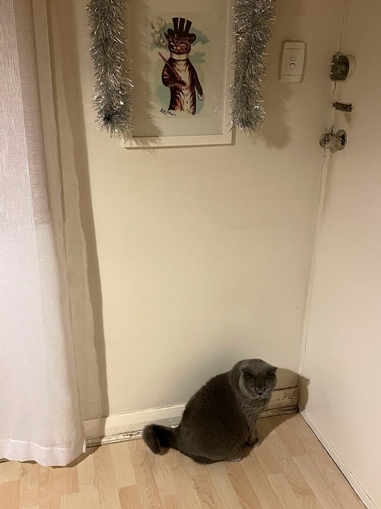 Charlie kept up his annoying habit of hiding inside the wardrobe while I’m getting ready for work in the morning. He hasn’t been locked in for a day yet, but he really pushed his luck a couple of times.