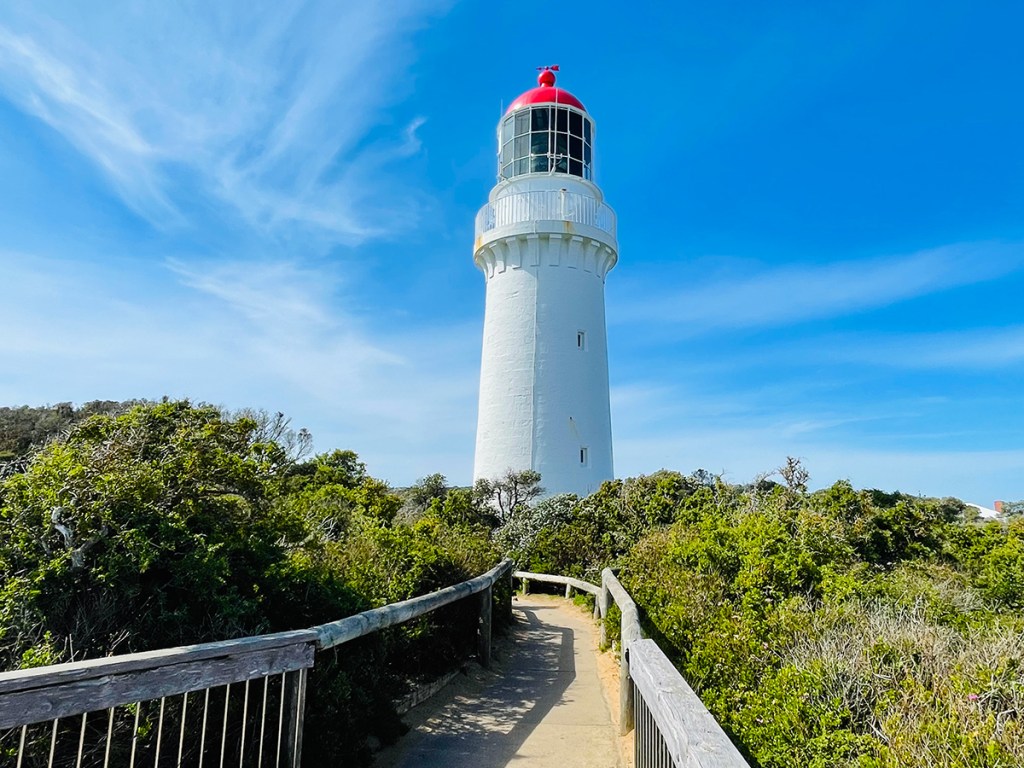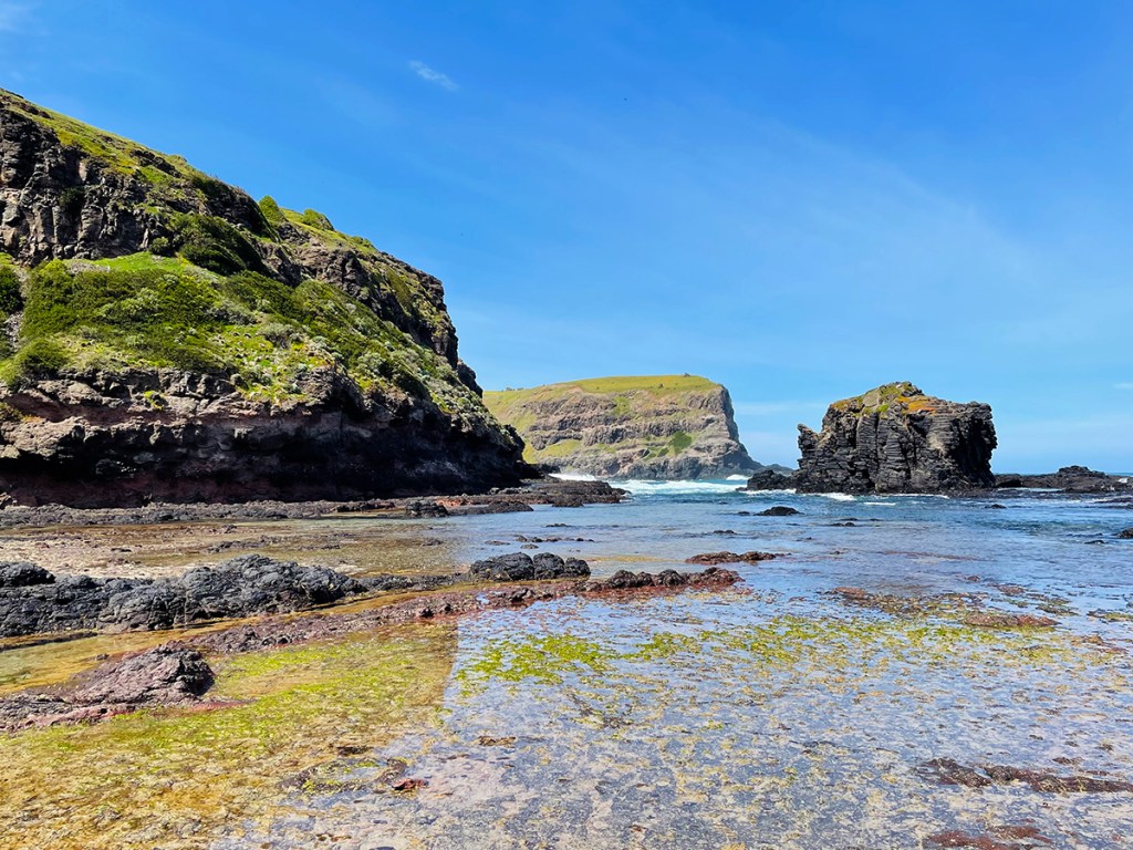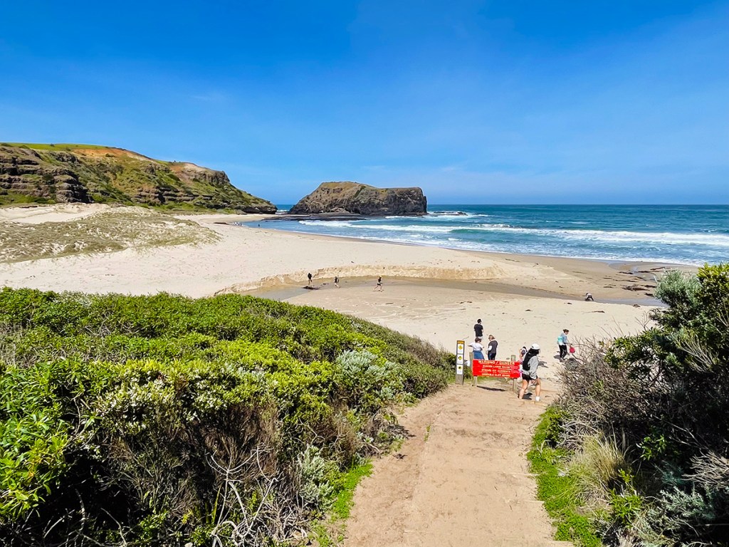 There are a few popular trails in the area, but my favourite is the Two Bays Walking Track, which begins in the Cape Schanck Lighthouse car park. At one point it veers away from the coastline and goes deeper inland, so when I don’t feel up to the full hike I stop at the Bushrangers Bay beach.