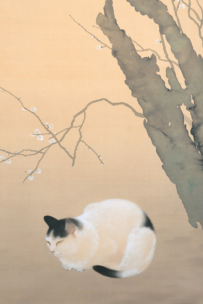I love minimalist Japanese paintings of cats and this soft and delicate artwork is just gorgeous. The puss looks like it’s trying to tuck in its paws on a chilly spring morning.
