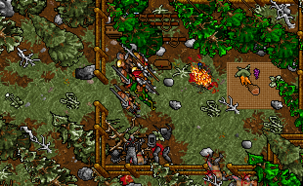 The monk who was supposed to help me find Wisps wasn’t around and I didn’t feel like searching the woods for him, so I decided to explore the Deep Forest for a while. I found the Shrine of Justice which had nothing of interest around, and then my wanderings took me all the way to the eastern edge of the forest, where I discovered a bandits’ camp with the magic armour.