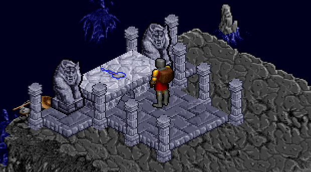 Praise Jesus, those infuriating flying platforms are stationary in this version of the game. Overall I didn’t hate jumping in the original Ultima VIII as much as others did, but oh my the moving platforms and the jumps of death.