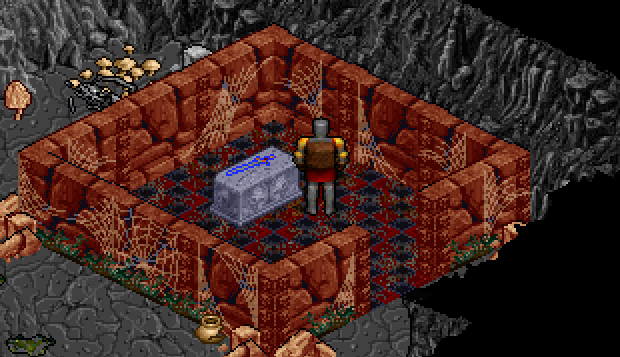 I collected silver pieces and took them to Korick, the blacksmith in Tenebrae, who, intriguingly, reveals himself to be a follower of the Zealan gods. He believes that eventually the old gods will come back, and I guess it’s a very likely outcome in the post-Titan world where people might look for something else to worship and pray to. Unfortunately, I can’t unsee Spoony’s review of Ultima 8, where he points out an, er, obscene gesture Korick makes while talking to you.